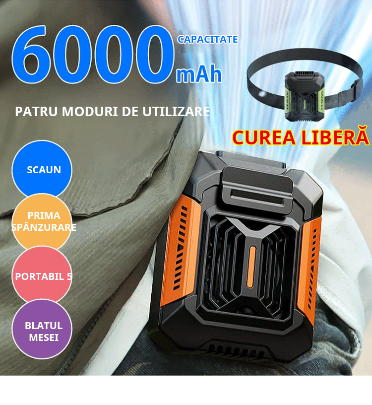 Dispozitiv de răcire completă pentru exterior【lanternă + power bank】cu curea inclusă