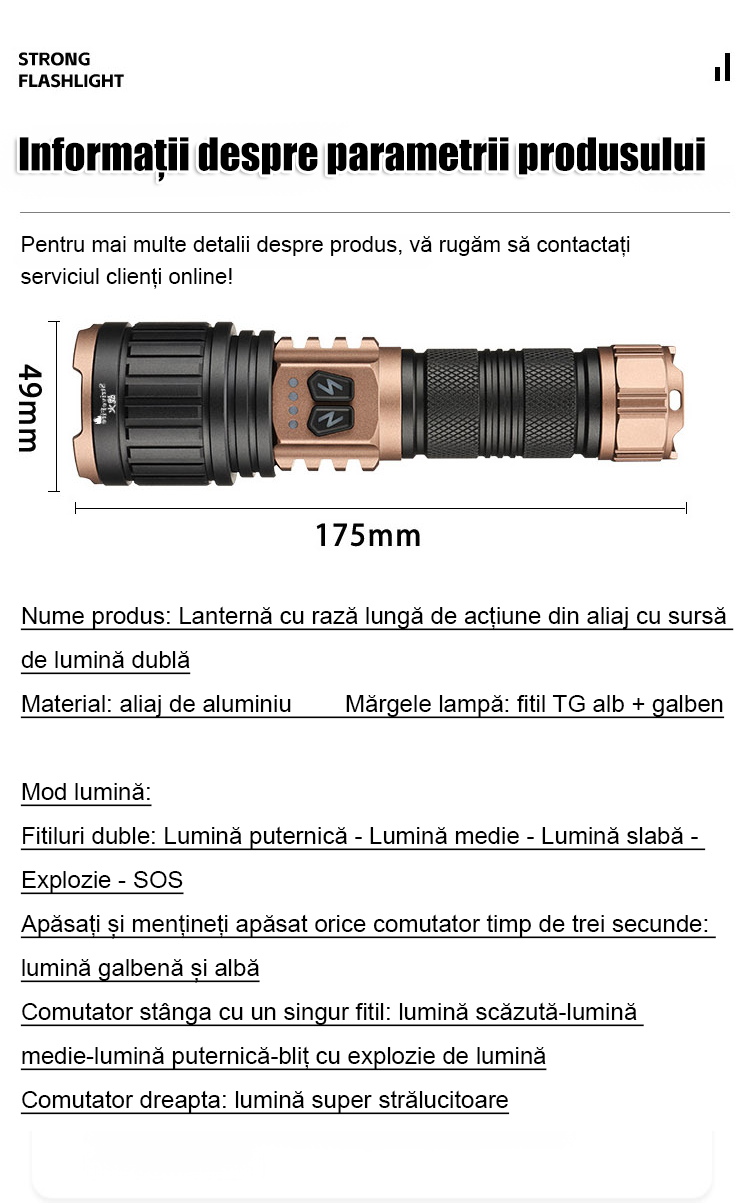 【Sursă dublă de lumină, rază ultra-luminoasă】Lanternă cu focalizare variabilă și laser alb